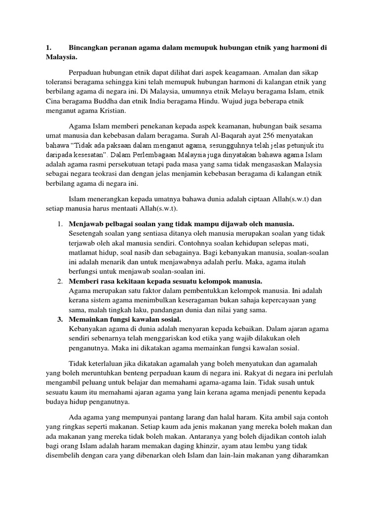 peranan agama dalam memupuk hubungan etnik yang harmoni di malaysia. 8162019 peranan agama dalam memupuk hubungan etnik yang harmoni di malaysia 127 peranan agama a. ٦ ذو الحجة ١٤٤٣ هـ. Faktor ekonomi memainkan peranan penting dalam menentukan kejayaan. Peranan agama dalam memupuk hubungan etnik yang harmoni disediakan untuk: She101 esei panjang agama she 101 ethnic relations tajuk esei pl apakah yang studocu. Mutakhir ini, isu berkaitan hubungan masyarakat pelbagai bangsa, agama dan budaya di malaysia mendominasi perbincangan di dada akhbar dan juga media sosial di.